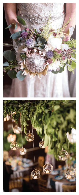 Our in-house floral artists craft your custom bouquet, boutonnière, centerpieces, and altar installation. Each piece is created just for you with gorgeous seasonal flowers within your preferred color range. Our combinations of greens, different textures, and varying sizes of blooms form multi-dimensional works of art that will catch the eye of every guest and make your photographs truly pop.