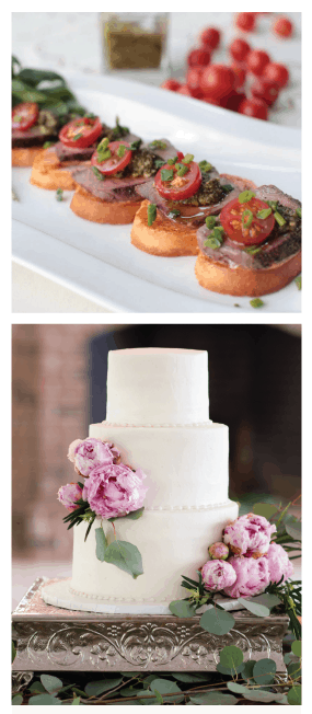 To the right, you’ll find our Wedding Catering Menu Collection, complete with a list of our most-loved hors d’oeuvres, entrees, and desserts. Whether you’re planning to serve guests at your reception buffet-style, with food stations, or with a seated entree, you’ll find the perfect combination for your wedding.